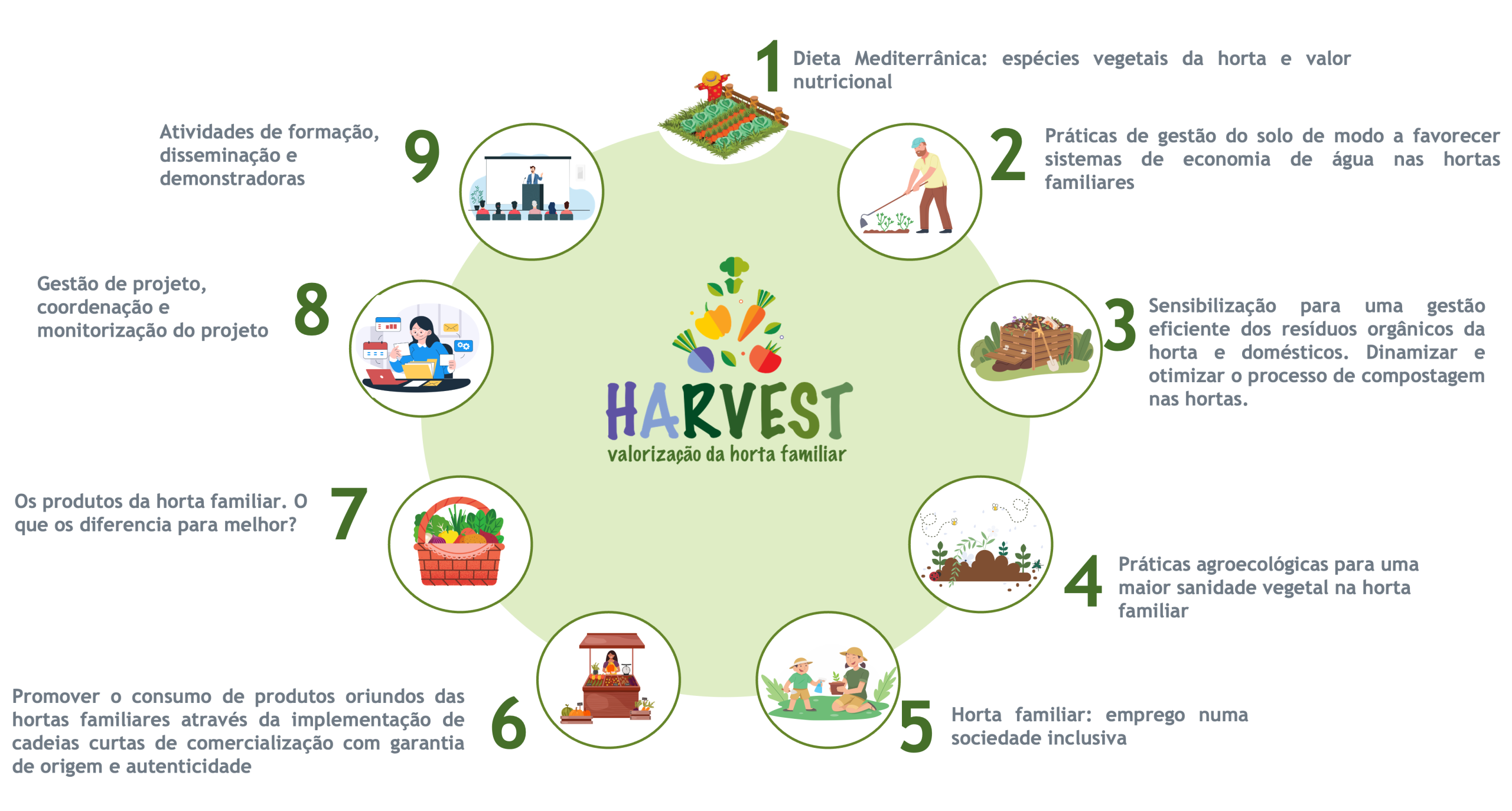 Assim, com o objetivo de promover a Dieta Mediterrânica no nosso país, assegurando uma alimentação sustentável, a presente proposta tem como principal estratégia potenciar e diferenciar os produtos da horta familiar tanto no meio rural como urbano. Para isso, neste projeto, serão desenvolvidas atividades agroecológicas em várias regiões do país, nas hortas familiares, mas também nas hortas urbanas e periurbanas de Lisboa, Viseu e Bragança, de modo a potenciar a utilização de práticas sustentáveis na agricultura familiar, em toda a cadeia de valor, ou seja, da produção até ao consumidor final.