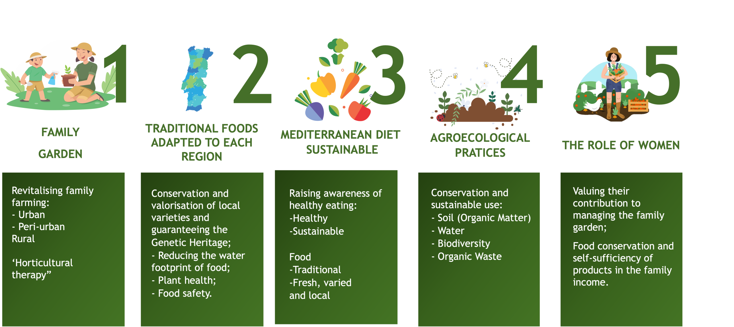 So, to promote the Mediterranean Diet in our country, and ensure a sustainable diet, the present proposal aims to enhance and differentiate family garden products in both rural and urban environments. This project will develop agroecological activities in family gardens of different regions of the country, but also, in urban and peri-urban gardens in Lisbon, Viseu and Bragança, to enhance the use of sustainable practices in family farming across the entire value chain, from production to the consumers.